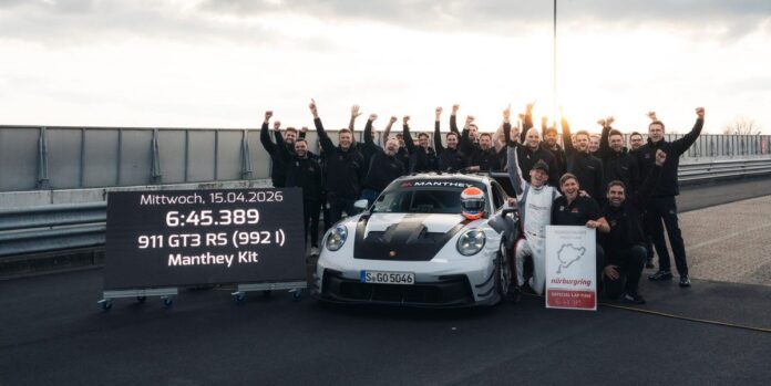 Conducido por el veterano piloto de desarrollo de Porsche, Jörg Bergmeister, el GT3 RS equipado con Manthey registró un tiempo impresionante de 6:45.389.